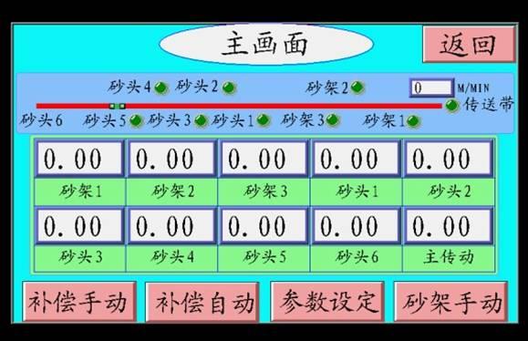 根據(jù)工藝的要求,在設(shè)計(jì)時(shí)每一個(gè)砂頭和砂架的工作是獨(dú)立分開(kāi)的,可以任意選擇,方便用戶操作。為控制加工精度每個(gè)砂頭、砂架的伸縮均可通過(guò)HMI手動(dòng)或自動(dòng)補(bǔ)償。